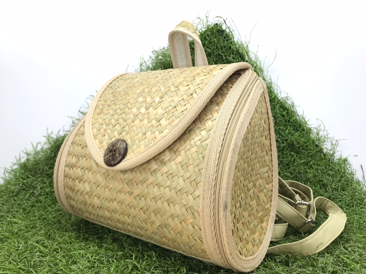 Balo Bàng là một trong các sản phẩm nằm trong dòng balo làm từ cây cỏ bàng 100% ngoài tự nhiên, balo ép được các nghệ nhân đan từng cây cỏ bàng khô bằng thủ công nên các đường nét của balo vô cùng hài hoà và chắc chắn. Balo có 2 lớp.