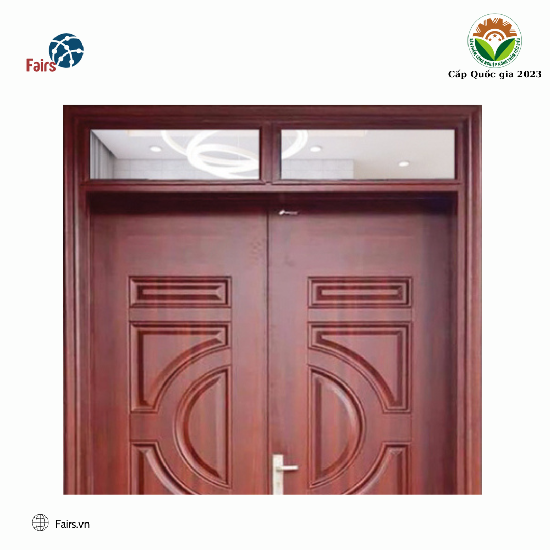 | – Cửa thép vân gỗ 2 cánh ô kính, kính dán an toàn 8.38 mm, dày 50 mm, khung đơn tường 130 mm |