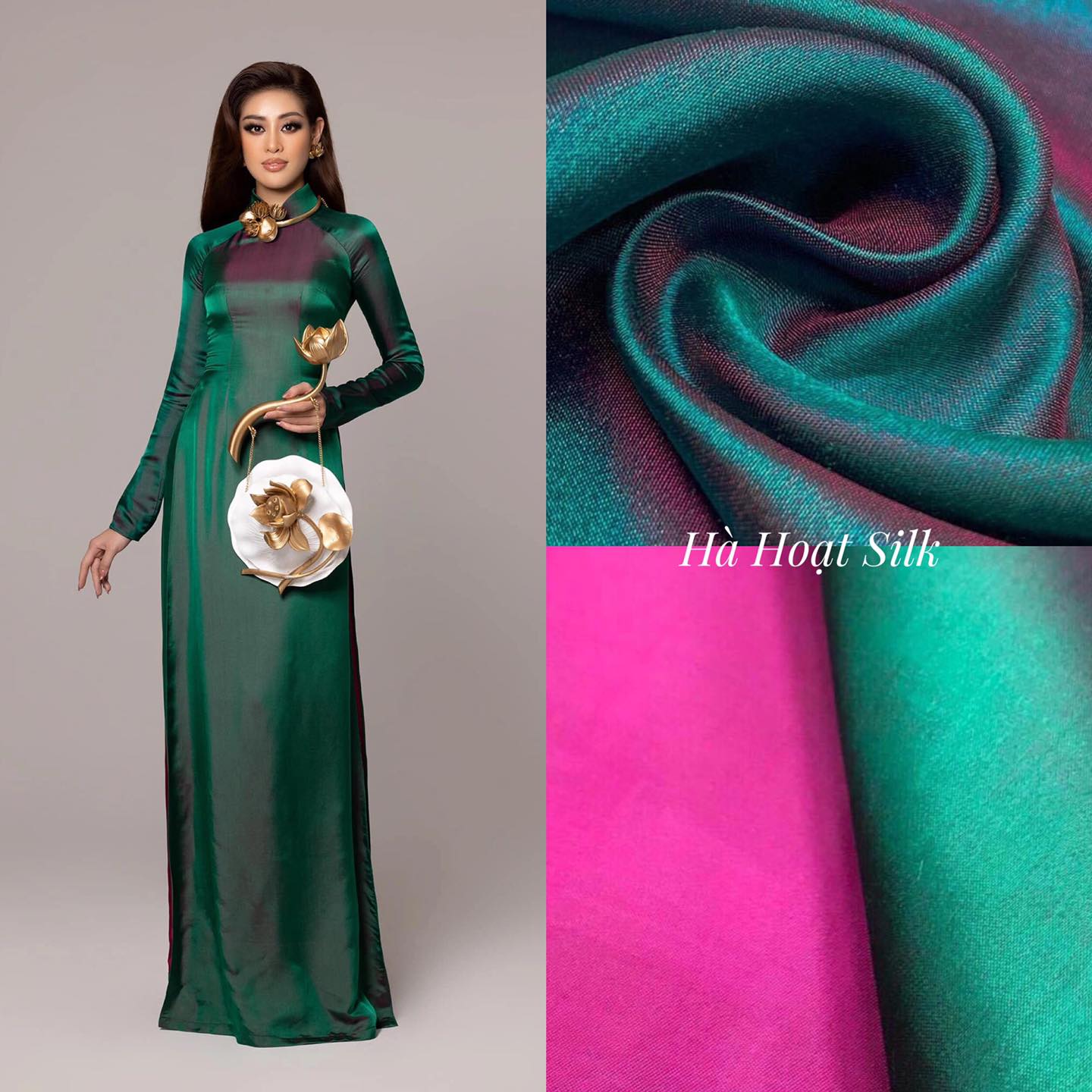 Lụa tơ tằm Xanh ánh hồng
