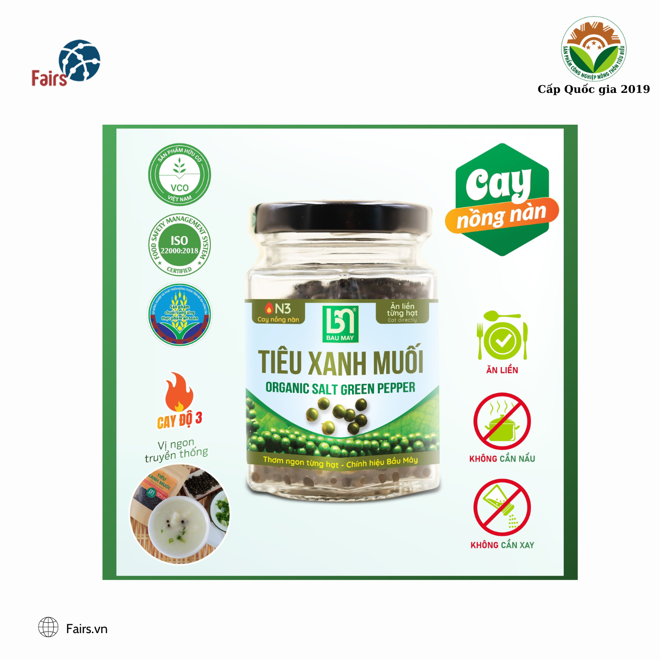 Thành phần: Tiêu xanh hữu cơ, muối, chanh