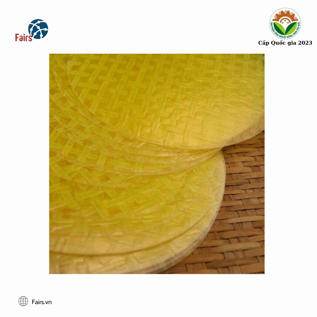 Được làm bởi những người thợ lành nghề và dày dặn kinh nghiệm, bánh tráng gạo sạch + củ nghệ tươi tròn đều, mịn và thoảng mùi thơm nhẹ của củ nghệ. Chắc chắn sẽ khiến bạn ấn tượng ngay lần đầu nhìn thấy.