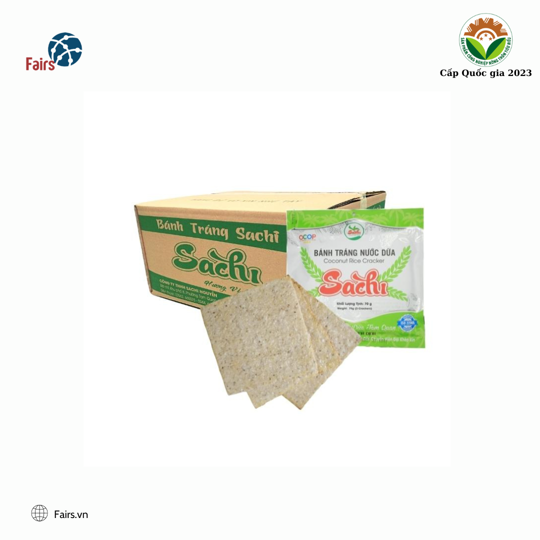 • Bánh tráng dừa nướng của Sachi đã được cấp chứng nhận tiêu chuẩn quốc tế ISO 22000:2018.