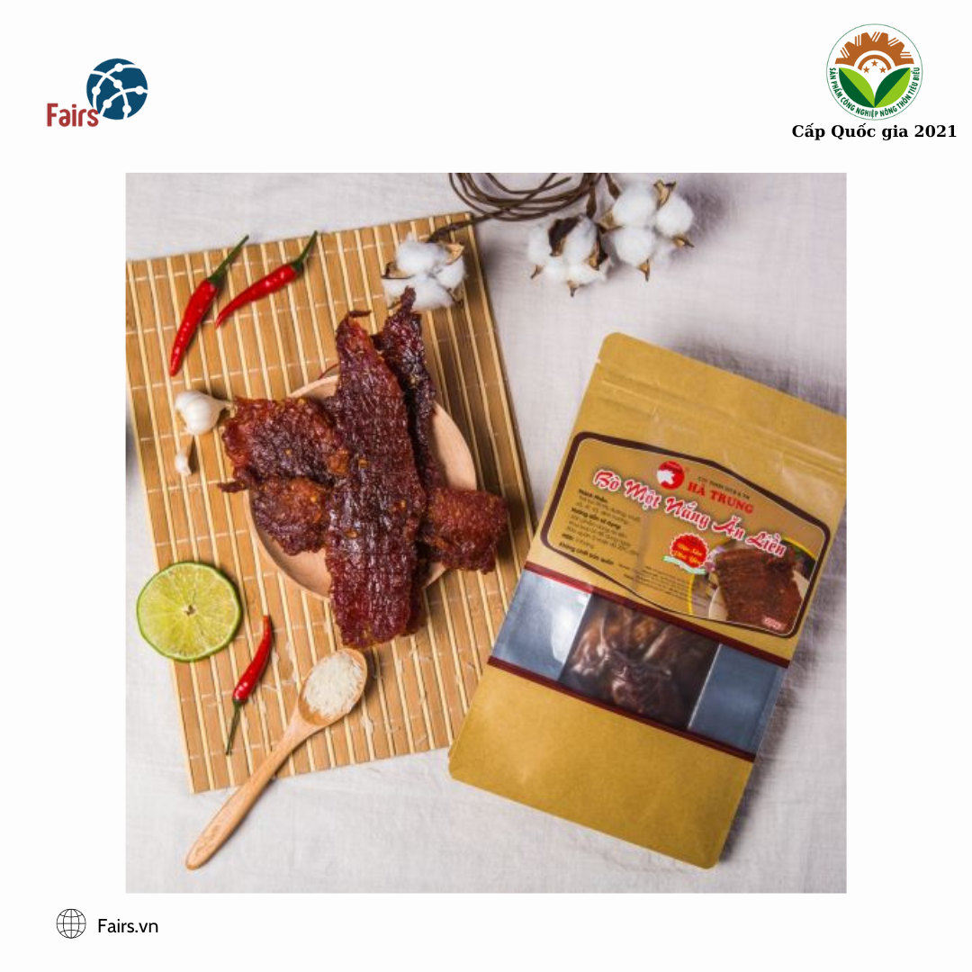 – Khô Bò Miếng được làm từ thịt nguyên chất, chế biến theo hương vị gia truyền với máy móc hiện đại mang đến hương vị đậm đà và hợp khẩu vị nhiều người. – Khô bò miếng có thể sử dụng làm món ăn chơi, bánh tráng trộn, nhăm nhi rượu bia. – Thịt được lựa chọn kỹ lưỡng, tẩm gia vị, sấy khô giúp giữ hương vị tự nhiên, mềm dai, vừa ăn và không khô cứng.