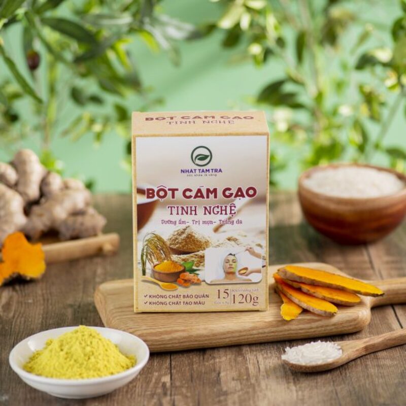 100% gạo cám nguyên chất sấy lạnh xay nhuyễn kết hợp với tinh nghệ