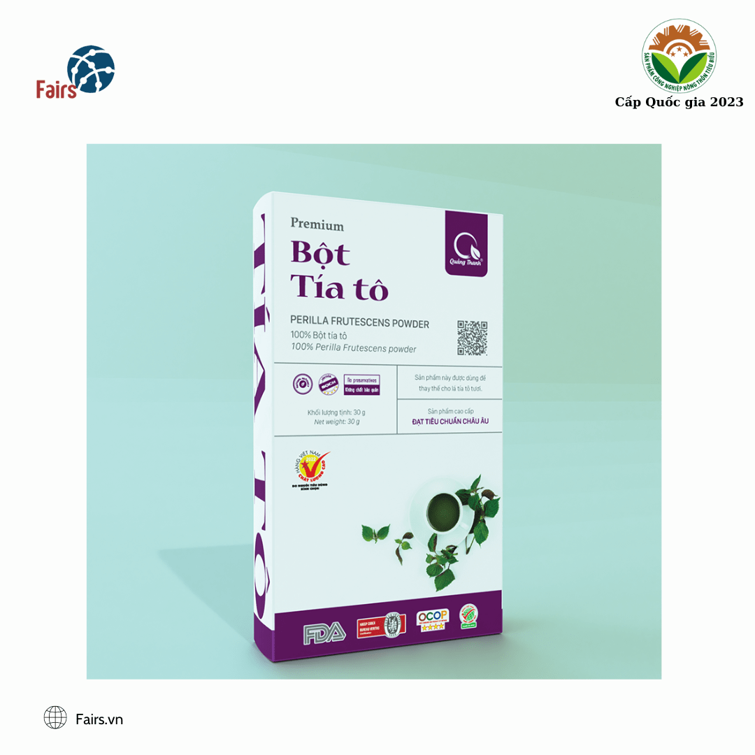 Bột Tía Tô Quảng Thanh có nguồn gốc từ 100% Tía Tô được trồng và thu hoạch tại trang trại theo hướng canh tác thực hành tốt nông nghiệp. Với công nghệ sấy lạnh hiện đại, tiệt trùng tận gốc các giun sán, vi sinh vật gây hại, Bột Tía Tô Quảng Thanh mang đến sự an toàn cho sức khỏe của bạn bằng những ly nước rau giữ được màu sắc, hương vị và dinh dưỡng nguyên vẹn từ Tía Tô Tươi. Bạn sẽ không mất quá nhiều thời gian và công sức để lặt, rửa, ép, vắt tía tô lấy nước uống.