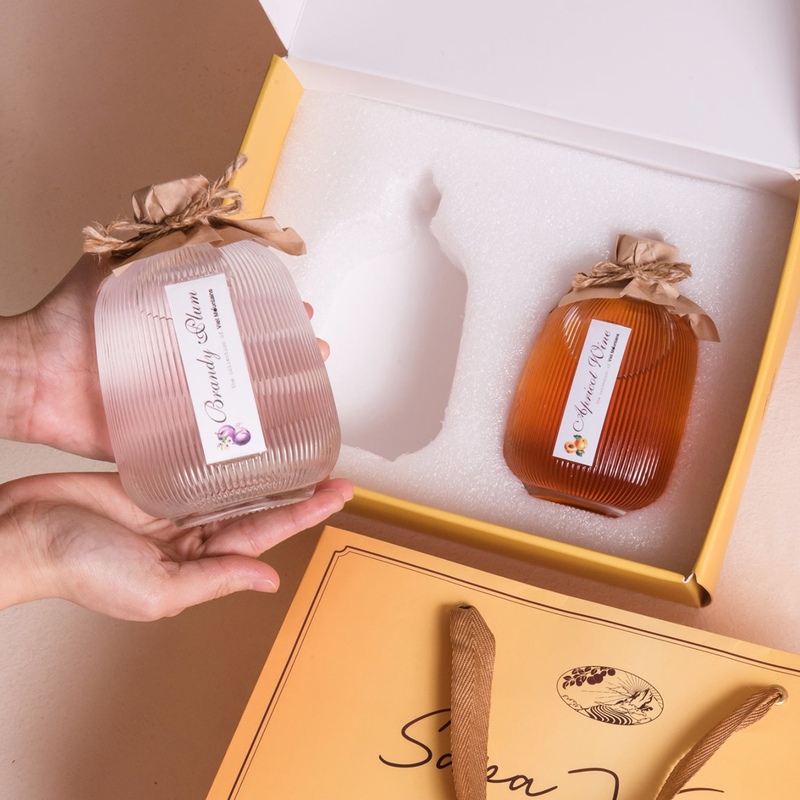 Cặp quà: Brandy plum (30 độ) và rượu mơ má đào (14 độ)