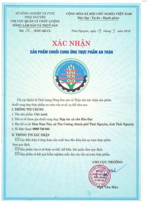 – Thành phần: Nguyên liệu là búp chè nõn tươi 1 tôm 1 lá tại vùng chè đạt tiêu chuẩn VietGap hướng hữu cơ của Hợp Tác Xã Chè Hảo Đạt được hái vào buổi sáng sớm, chè sau đó đem về ngay và được sao khô luôn theo phương pháp truyền thống sử dụng công nghệ hiện đại đảm bảo quy trình KHÉP KÍN, đã giữ được chất, vị, hương Chè Tân Cương tự nhiên, sau khi sao khô chế biến thành Chè Tôm Nõn được đóng gói bằng túi ẤM hút chân không đế tiện lợi khi sử dụng và bảo quản chè được tốt và lâu hơn..