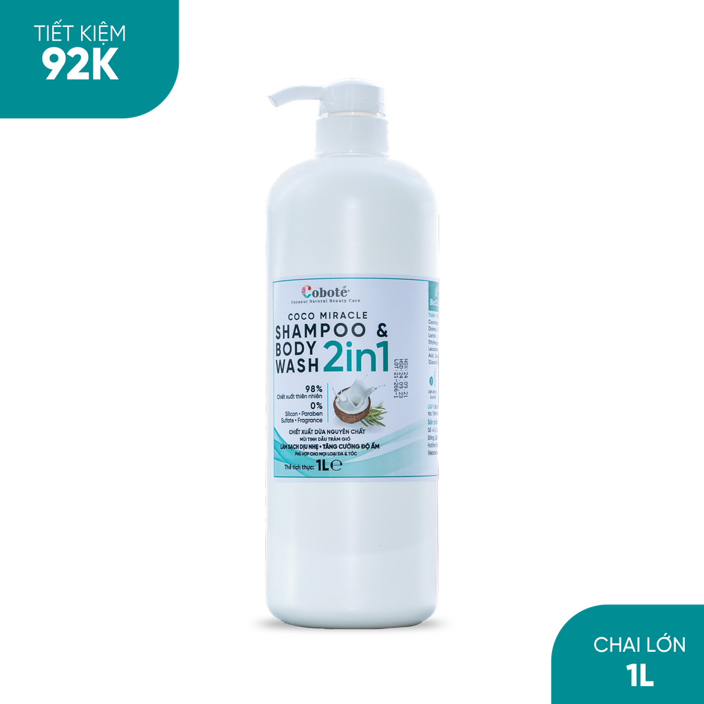 Dầu tắm gội toàn thân 2 trong 1 Coboté với công thức Bio:CLEAR làm sạch dịu nhẹ, bổ sung chiết xuất từ sữa dừa cùng Vitamin B5, cung cấp độ ẩm & dưỡng chất thiết yếu cho da và tóc, mang lại cho bạn làn da ẩm mịn và mái tóc suôn mềm khỏe mạnh