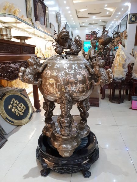 Chất liệu:Đồng đỏ, đúc thủ công, khảm bạc cao cấp