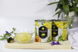 | 24 lon/carton | 565 | 300 | Dứa tươi, nước, đường | 14 – 16 | 0.04 – 0.05 |