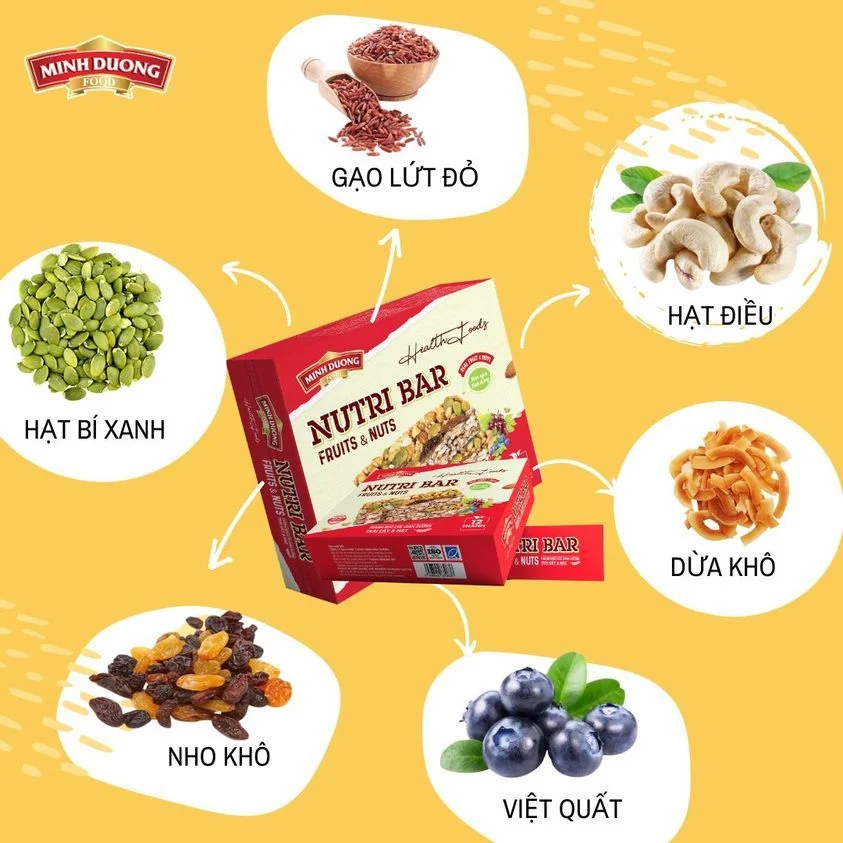 Thanh ngũ cốc dinh dưỡng trái cây và hạt Minhduongfood là một lựa chọn tuyệt vời cho bữa sáng nhanh gọn, tiện lợi và cung cấp đầy đủ dinh dưỡng cần thiết cho cơ thể. Sự kết hợp hoàn hảo của các loại hạt dinh dưỡng cùng công thức cải tiến sẽ mang lại nguồn dinh dưỡng tuyệt vời và an toàn cho cơ thể bạn.