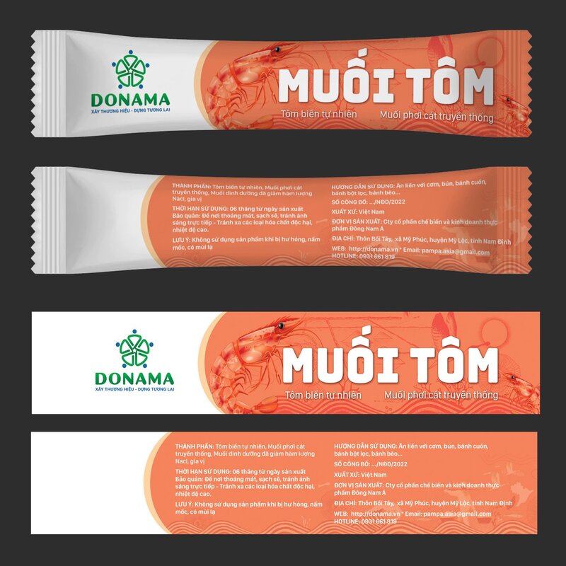 Thành phần:Tôm biển tự nhiên; Muối phơi cát truyền thống; Muối dinh dưỡng đã giảm hàm lượng NaCl; Gia vị.