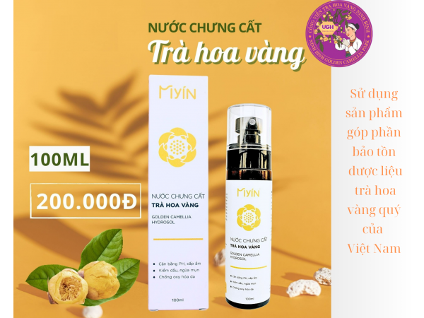 Golden Camellia Hydrosol – Nước chưng cất Trà Hoa Vàng là sản phẩm nước chưng cất từ lá Trà hoa vàng Cúc phương giúp ngừa mụn và chống oxy hóa nằm trong bộ chăm sóc da Trà Hoa Vàng . Sản phẩm giúp kháng viêm, giảm kích ứng, ngăn ngừa bít tắc lỗ chân lông, ngăn ngừa mụn, bảo vệ da khỏi tổn thương từ tia UV, giúp da săn chắc và làm mờ làn da xỉn màu.