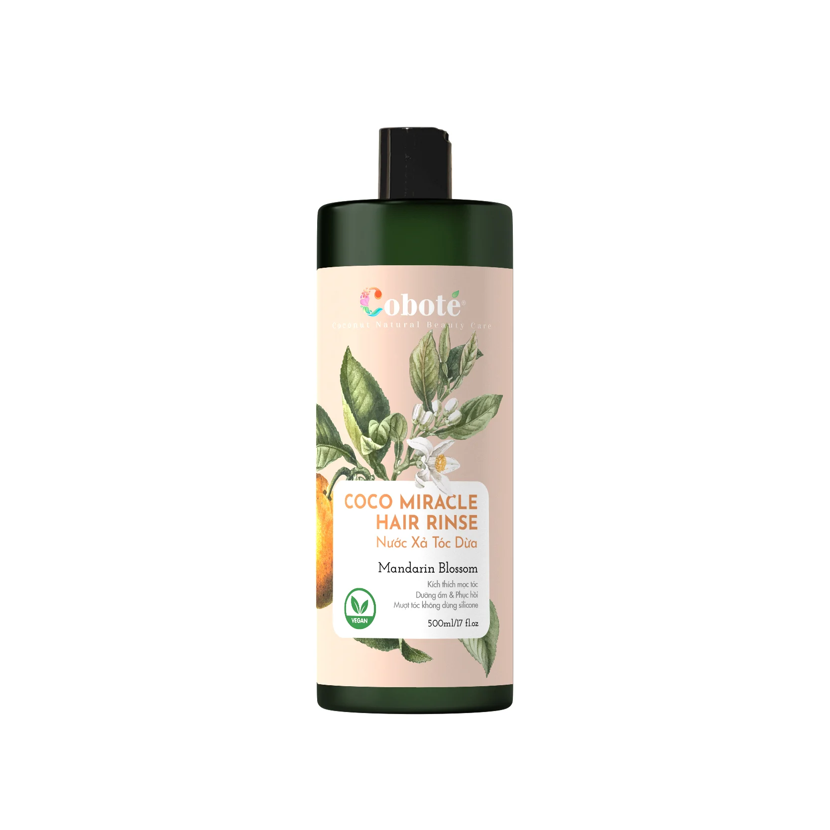 Nước xả tóc mật hoa dừa Coboté Hair Rinse là giải pháp TỰ NHIÊN thay thế cho dầu xả đầu tiên và duy nhất tại Việt Nam (Đã đăng ký bản quyền). Với hydrosol mật hoa dừa, sản phẩm giúp ngăn ngừa tình trạng tóc khô và gãy rụng, giảm rối tóc khi chải, kiểm soát dầu tự nhiên và hỗ trợ cân bằng pH của tóc và da đầu. Mùi hoa quýt thơm mát, phù hợp sử dụng cùng bộ dầu gội dừa.