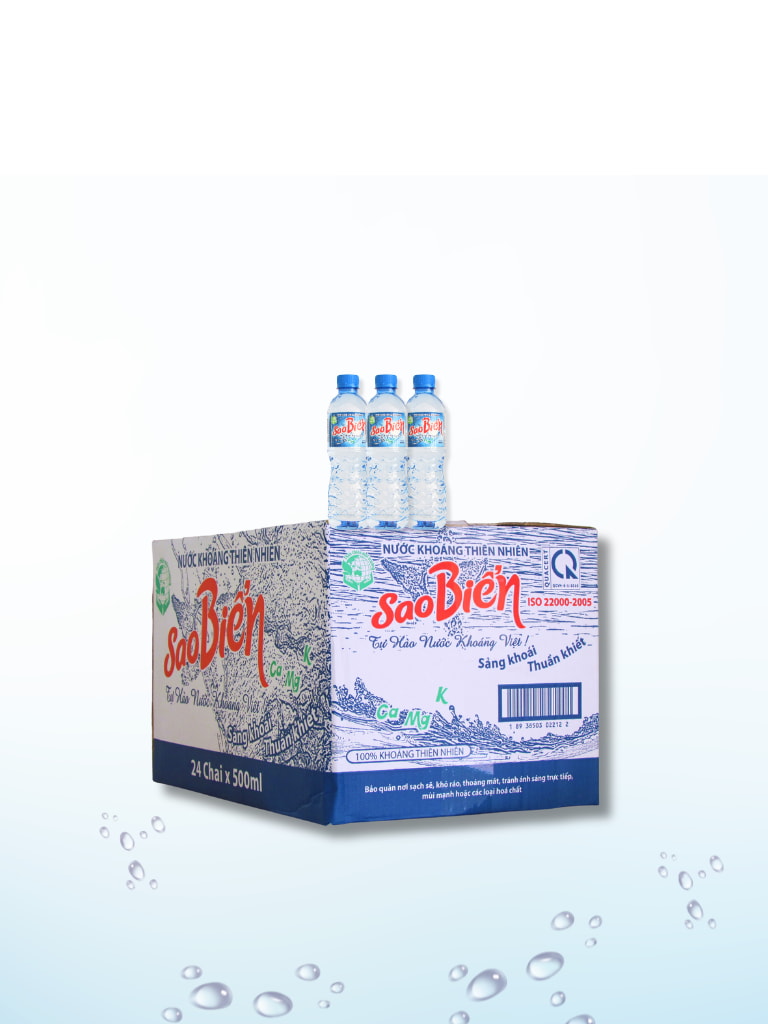 Nước khoáng thiên nhiên Sao Biển là sản phẩm của Công ty Cổ phẩn Thực Phẩm Biển Xanh được khai thác và sản xuất từ nguồn khoáng nóng Long Toàn rất sâu trong lòng đất, chảy qua nhiều địa hình và tầng địa chất giàu khoáng chất quý giá. Khai thác và xử lý bằng công nghệ tiên tiến, chất lượng sản phẩm được quản lý nghiêm ngặt theo tiêu chuẩn ISO 22000:2018. Nước khoáng Sao Biển – STARFIWA chứa hàm lượng khoáng nhẹ nên thích hợp sử dụng giải khát và góp phần bù khoáng hàng ngày cho cơ thể.