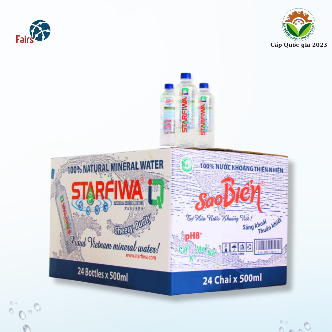 Nước khoáng thiên nhiên Sao Biển là sản phẩm của Công ty Cổ phẩn Thực Phẩm Biển Xanh được khai thác và sản xuất từ nguồn khoáng nóng Long Toàn rất sâu trong lòng đất, chảy qua nhiều địa hình và tầng địa chất giàu khoáng chất quý giá. Khai thác và xử lý bằng công nghệ tiên tiến, chất lượng sản phẩm được quản lý nghiêm ngặt theo tiêu chuẩn ISO 22000:2018. Nước khoáng Sao Biển – STARFIWA chứa hàm lượng khoáng nhẹ nên thích hợp sử dụng giải khát và góp phần bù khoáng hàng ngày cho cơ thể.
